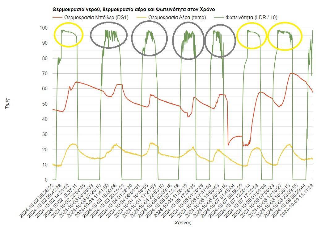 Come possiamo distinguere le giornate soleggiate da quelle nuvolose dal data logger IOT dello scaldabagno solare?